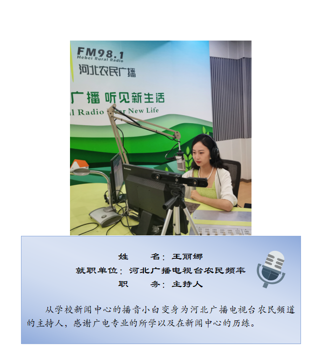 依托新闻传播学一级学科,紧跟广播电视与新媒体融合发展趋势,致力于培养具有正确政治立场、精通广播电视理论和实践技能,具备音视频创作和新媒体技术应用能力的复合型人才。历届学生作品屡获各类国家级、省级奖项,并在中央电视台、“学习强国”平台、河北广播电视台、长城网、石家庄电视台等媒体展播。