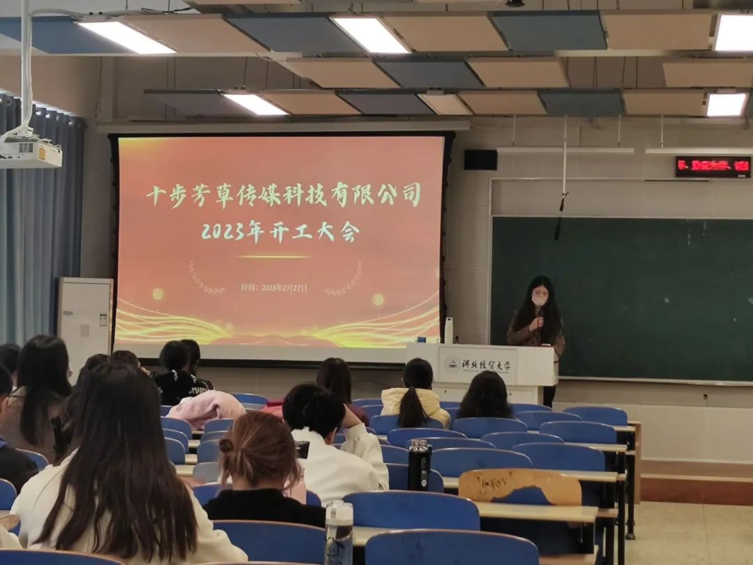 河北十步芳草传媒科技有限公司于2023年2月27日下午4:00举办开工大会,本次大会主要目的是与新加入员工见面,并初步提出新的一年的公司发展计划,提振士气,激发员工工作热情。王惠东、王彦勋、刘冬璐老师出席本次会议,河北十步芳草传媒科技有限公司全体员工参会。