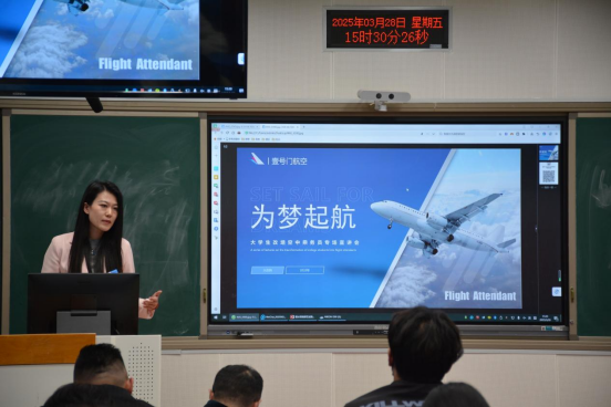 2025届毕业生春季专场招聘会在北三教B102教室成功举办。北京众行互动数字文化传媒有限公司、北京壹号门航空服务技术培训中心有限公司、衡水滨湖志臻中学等10家优质企业携数十个岗位进校揽才,学院党委副书记王英、辅导员郭梦及近百名毕业生共同参会,就业工作联络员张智主持活动。