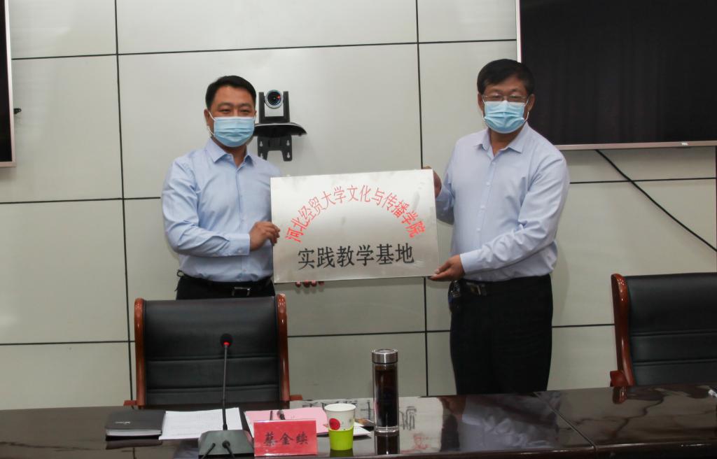 与井陉县融媒体中心签署“校、地合作实践教学基地”合作协议。院党委书记蔡金续、县委副书记郝英鹏为实践教学基地揭牌。双方还就媒体融合、乡村振兴、文化挖掘传播等方面进行了广泛深入的交流座谈。