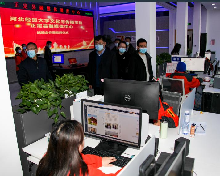 11月30日,文化与传播学院、正定县融媒体中心战略合作签约暨揭牌仪式在正定县融媒体中心举行。文化与传播学院党委书记蔡金续、副院长景义新及教师代表,正定县融媒体中心主任傅玉雷、副主任高清、融媒体中心业务骨干出席仪式。
