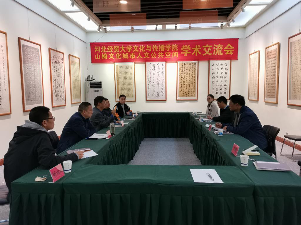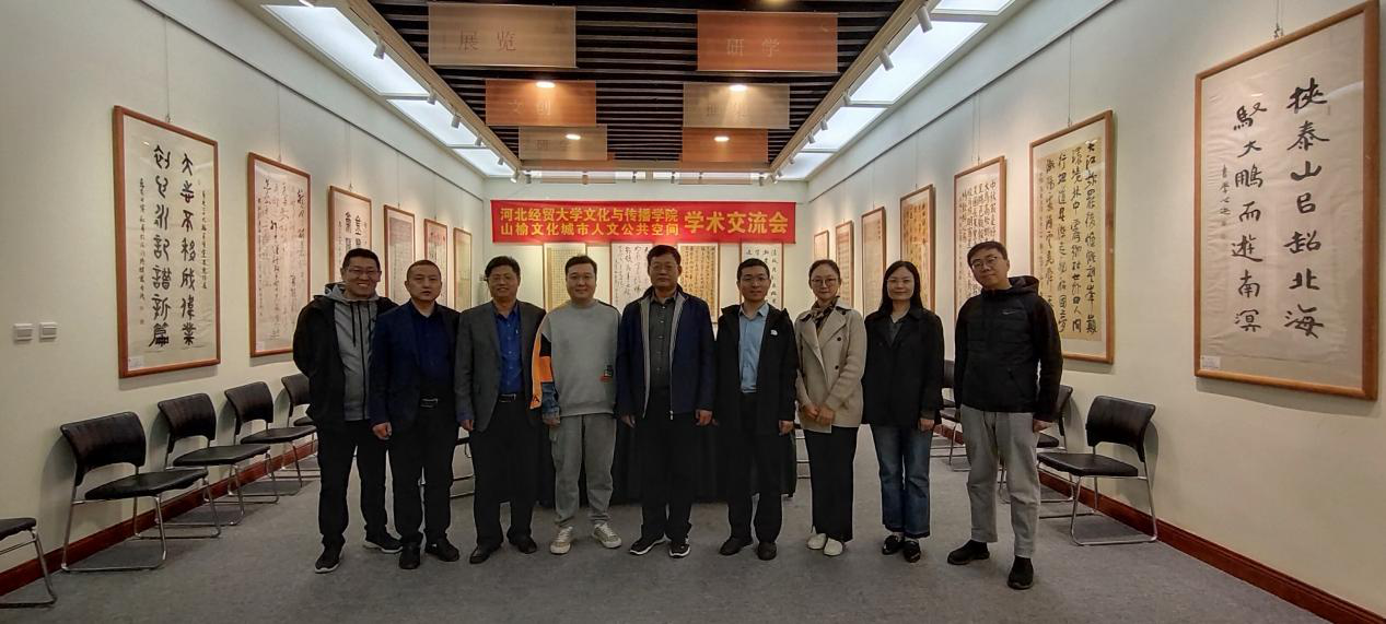 文化与传播学院和山榆书画院围绕城市人文公共空间主题项目举行学术交流活动。文化与传播学院党委书记蔡金续、院长景义新、汉语言文学系主任宋菲、副主任刘静一行,山榆书画院院长郝国书、河北广电MCN机构总经理王伟、河北卫视著名主持人小强、swag成人