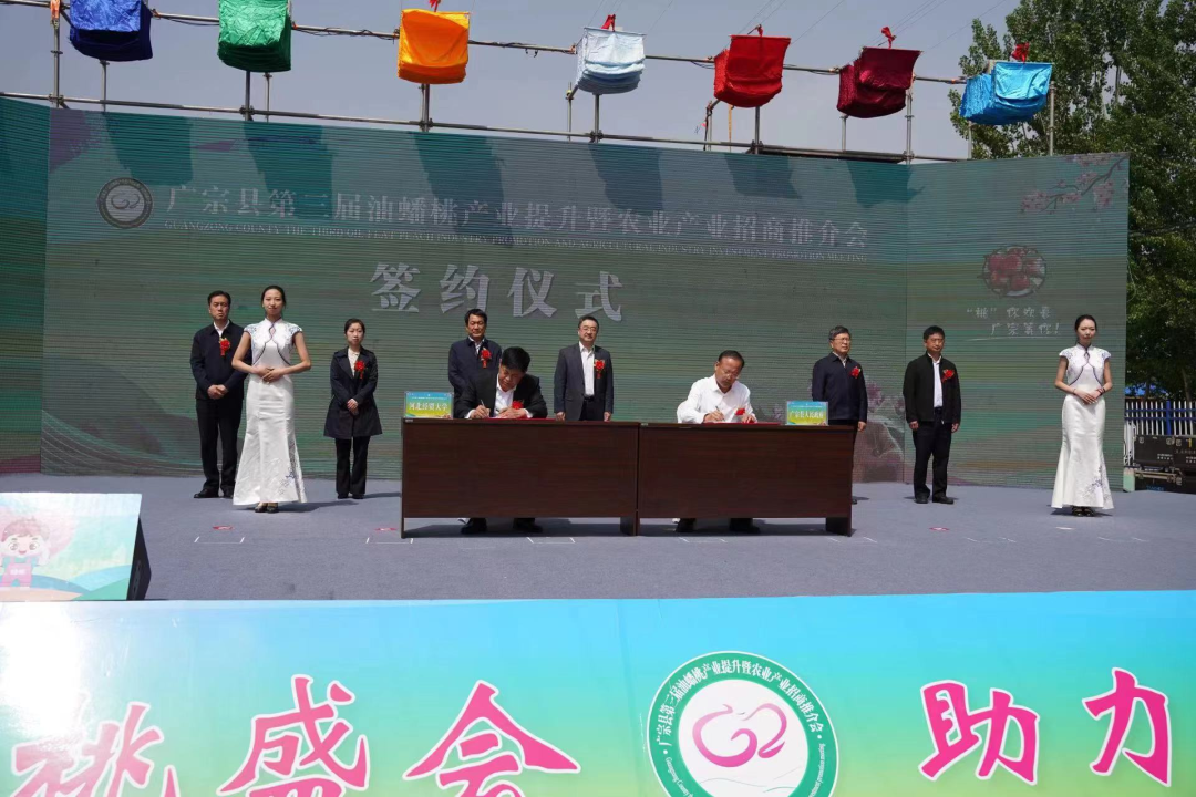 4月28日,校党委副书记、校长黄晟,党委常委、副校长杨金田带队赴邢台市广宗县参加第三届油蟠桃产业提升会开幕式并签署乡村振兴战略合作协议。省农业农村厅二级巡视员王旗,市政协副主席贾芳,广宗县四大班子领导出席, swag成人