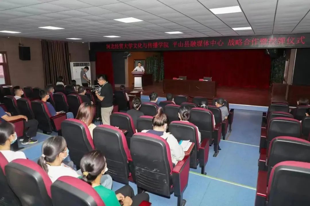 6月9日下午,文化与传播学院与平山县融媒体中心举行战略合作签约暨授牌仪式。文化与传播学院院长景义新、平山县融媒体中心主任王静出席仪式并代表双方签约。学院教师代表及平山县融媒体中心全体干部职工参会。