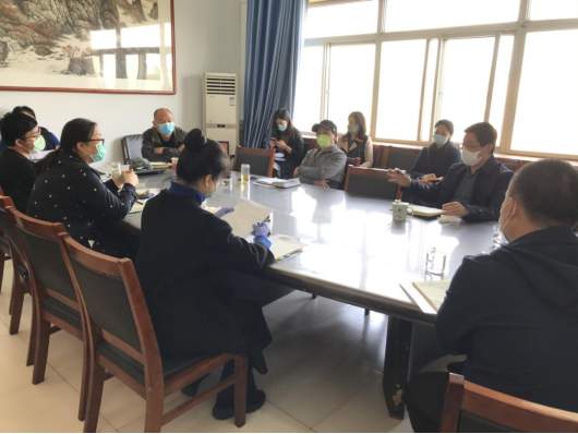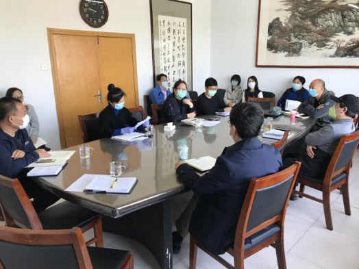 于会议室召开全体行政坐班人员复工返校工作布置会。院党委书记翟建北、院长张金桐、全体院班子成员、行政坐班人员参加会议。