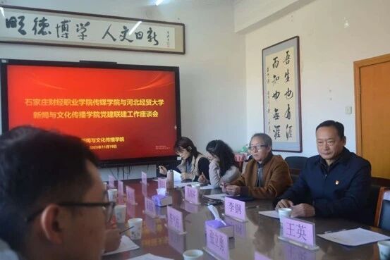 的基本情况。薛向东和杨立芬则介绍了石家庄财经职业学院的整体发展概况,详细阐述了该校传媒学院的学科建设、师资力量与人才培养特色。