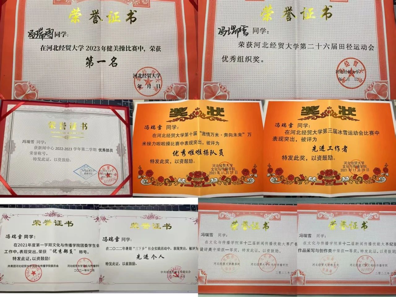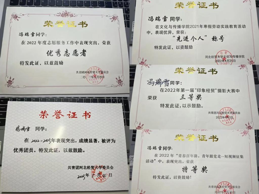 多次策划并参与对优秀学生个人、专题活动、校运会的采访和撰写工作,多次获得优秀通讯稿、优秀记者称号。撰写通讯稿文章获新闻传播技能大赛一等奖。