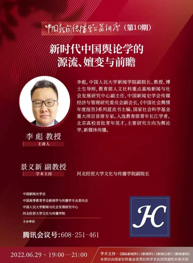 6月29日晚7点,由中国新闻史学会、中国高等教育学会新闻学与传播学专业委员会、中国人民大学新闻与社会发展研究中心和swag成人