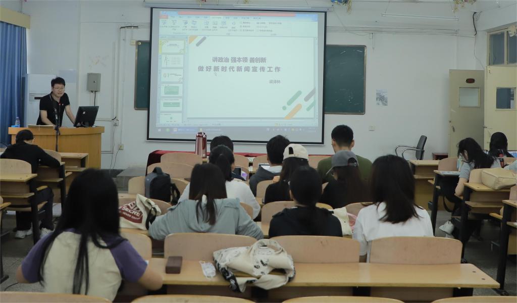 邀请正定县广播电视台采访部副主任梁泽林在第一教学楼507教室作题为“讲政治、强本领、善创新,做好新时代新闻宣传工作”的讲座,该讲座为新闻与传播行业发展前沿系列讲座第9讲,学院相关专业研究生、本科生及教师共60余人参加。