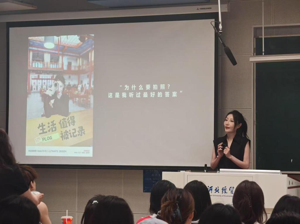 邀请青年导演兼河北华鼎文化传媒艺术总监周新蕾作题为“华为影像XMAGE与移动影像创作”的讲座。该讲座为新闻与传播行业发展前沿系列讲座第16讲,吸引了全校100余名师生的广泛关注与积极参与。